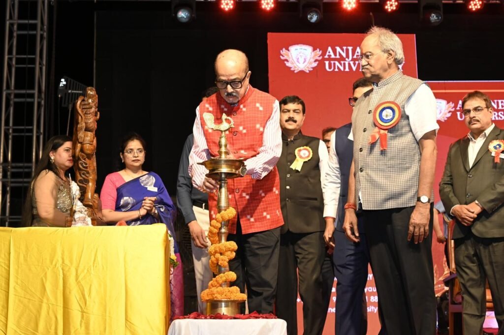 रायपुर :–आंजनेय विश्वविद्यालय वार्षिक सांस्कृतिक उत्सव “उड़ान – 2025” का भव्य आयोजन किया गया। जिसका उद्देश्य विद्यार्थियों की रचनात्मकता, नेतृत्व क्षमता और सांस्कृतिक विविधता को एक मंच प्रदान करना रहा। इस वर्ष “उड़ान – 2025” की थीम रही “रंगीलो भारत”, जिसमें विद्यार्थियों ने अपने उत्साह, कल्पनाशक्ति और प्रतिभा का उत्कृष्ट प्रदर्शन किया। मुख्य अतिथि महामहिम राज्यपाल श्री रमेन डेका जी ने कहा कि शिक्षा के साथ स्किल पर जोर देना ज्यादा महत्वपूर्ण है। पढ़ाई का उद्देश्य केवल डिग्री लेना नहीं होना चाहिए बल्कि मूल्य आधारित शिक्षा पर हमें बल देना होगा। विगत दो वर्षों में बहुत से अकादमी कार्यक्रमों से आंजनेय विश्वविद्यालय ने अपनी पहचान स्थापित की है। अति विशिष्ट अतिथि माननीय सांसद श्री बृजमोहन अग्रवाल जी ने कहा कि वार्षिक उत्सव किसी भी विश्वविद्यालय के सर्वांगीण विकास को रेखांकित करता है, शिक्षा के साथ-साथ सांस्कृतिक उत्सव का वातावरण नए सृजन और संभावनाओं के अवसर प्रदान करता है। विशिष्ट अतिथि प्रोफेसर विजय कुमार गोयल जी कहा कि राष्ट्रीय शिक्षा नीति के पालन से शिक्षा के साथ-साथ सर्वांगीण विकास अब संभव हो पाया है । अब विद्यार्थियों के पास यह स्वतंत्रता है कि वह अपने पसंद के हिसाब से शिक्षा ग्रहण कर अपने विकास की संभावनाओं को बढ़ा सकते हैं।