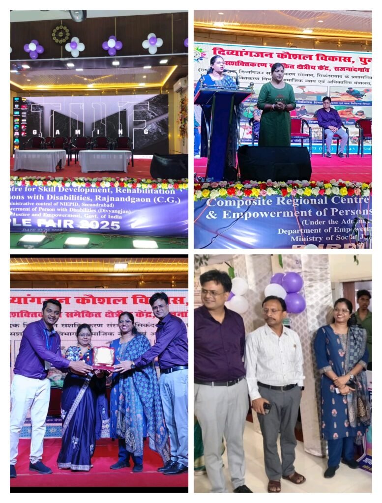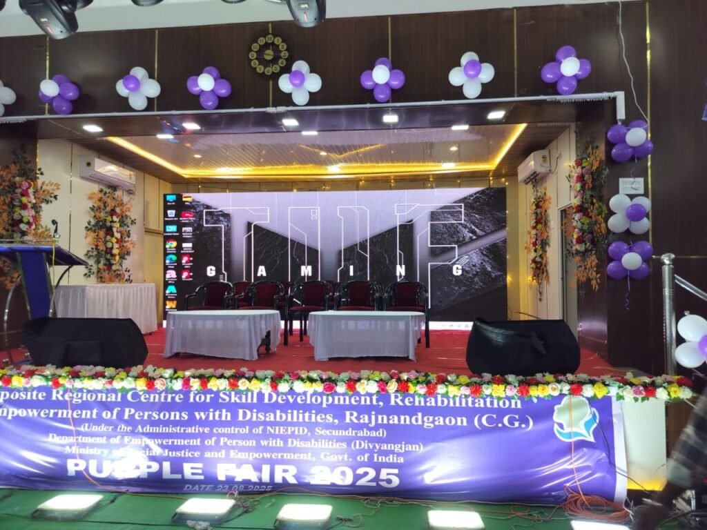 कोरबा :- दिव्यांगजन सशक्तिकरण विभाग, सामाजिक न्याय एवं अधिकारिता मंत्रालय, भारत सरकार के तत्वावधान में आज “पर्पल फेयर” का भव्य आयोजन सीनियर क्लब सह. सी.एस.ई.बी. फुटबॉल मैदान, सी.एस.ई.बी. चौक, कोरबा में संपन्न हुआ। यह आयोजन प्रातः 10 बजे से आरंभ हुआ, जिसमें भारी संख्या में दिव्यांगजन, सामाजिक संगठनों के प्रतिनिधि, शैक्षणिक संस्थान, हितधारक तथा शहर के प्रबुद्ध नागरिक शामिल हुए।