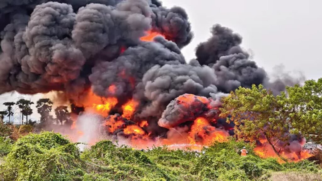 अमरावती:- प्रधानमंत्री नरेंद्र मोदी के सभा स्थल से महज 6 किलोमीटर दूर स्थित वेंकटपालेम एन-7 रोड पर भीषण आग लग गई. यह हादसा आंध्र प्रदेश के अमरावती में पुनर्निर्माण कार्यों के उद्घाटन समारोह के दौरान हुआ. आग लगने से करोड़ों रुपए के एल एंडटी के पाइप जलकर खाक हो गए. प्रधानमंत्री के सभा स्थल से कुछ ही दूर हुए इस अग्निकांड को लेकर लोगों ने गंभीर चिंता जताई है. अब इसको लेकर कई सवाल उठ रहे हैं. क्या यह मात्र दुर्घटना थी या आग जानबूझकर लगाई गई? क्या यह किसी बड़ी साजिश का हिस्सा था? इन कई बिंदुओं को लेकर जांच जारी है.