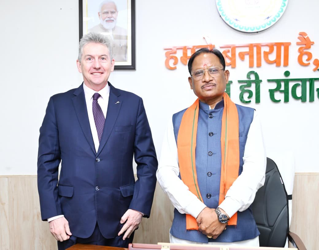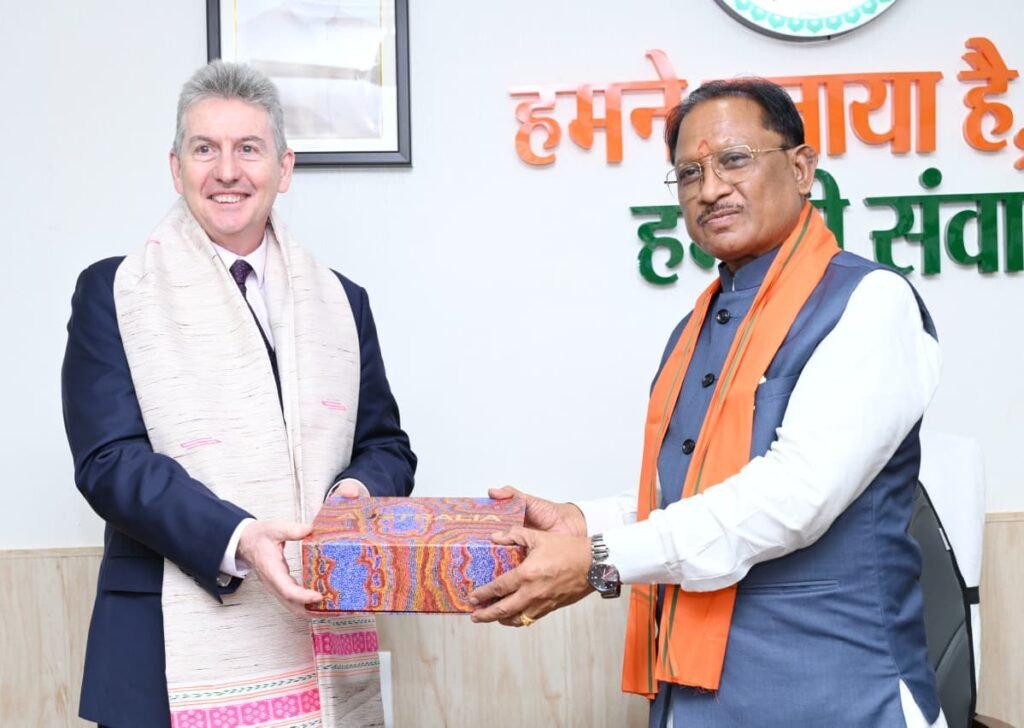 रायपुर :– मुख्यमंत्री श्री विष्णु देव साय से आज राजधानी रायपुर स्थित मुख्यमंत्री निवास में ऑस्ट्रेलिया के महावाणिज्य दूत बर्नार्ड लिंच ने सौजन्य मुलाकात की।