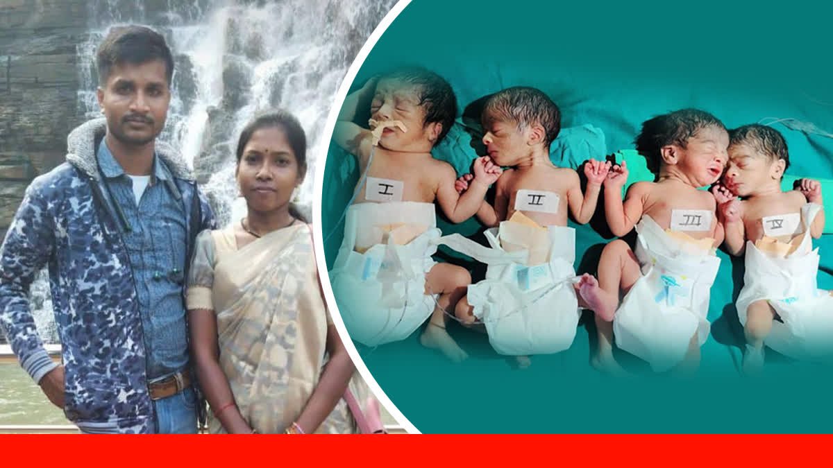 हमारी शादी चार साल पहले हुई थी. मेरी पत्नी लक्ष्मी को गर्भ नहीं ठहर रहा था. एक बार गर्भ ठहरा भी लेकिन वह मिसकैरेज हो गया. उसके बाद हमने डॉक्टरी इलाज की मदद ली. अब एक साथ चार बच्चों का जन्म हमारे यहां हुआ है-नंदेश्वर नेताम, नवजात बच्चों के पिता