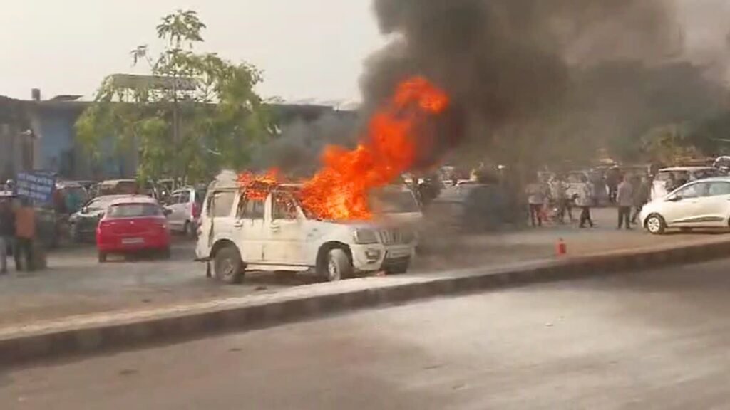 रायपुर:- रायपुर रेलवे स्टेशन की पार्किंग में उस वक्त हड़कंप मच गया. जब एक कार में आग लग गई. देखते ही देखते कार आग की लपटों से घिर गई और कुछ ही देर में कार पूरी तरह जल गई. उसके बाद रायपुर रेलवे स्टेशन की पार्किंग में अफरा तफरी का माहौल हो गया. आनन फानन में कार के आस पास से सभी गाड़ियों को हटाया गया. जिससे यह आग दूसरी किसी और गाड़ियों तक नहीं पहुंच सकी. इस तरह यह आग आगे नहीं बढ़ सकी.