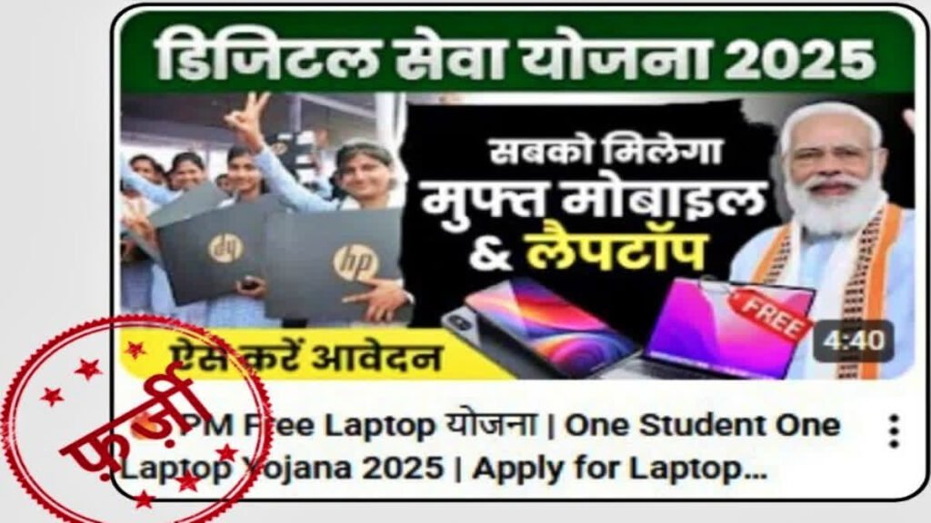एक YouTube चैनल के वीडियो थंबनेल में यह दावा किया गया है कि ‘PM Free Laptop योजना’ के तहत सरकार सभी को मुफ्त लैपटॉप प्रदान कर रही है. पीआईबी ने फैक्ट चेक कर बताया कि यह दावा पूरी तरह से फर्जी है. भारत सरकार ऐसी कोई योजना नहीं चला रही है. इन Clickbait वीडियो का मकसद सिर्फ व्यूज़ और सब्सक्राइबर बढ़ाना होता है, न कि आपको सही जानकारी देना है. सतर्क रहें, सुरक्षित रहें.