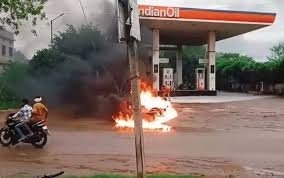 रायगढ़ :- रायगढ़ जिले के खरसिया क्षेत्र में उस समय अफरा-तफरी मच गई, जब एक युवक की बाइक में पेट्रोल भरवाने के तुरंत बाद आग लग गई। हादसा सेवकराम फ्यूल्स पेट्रोल पंप में हुआ, जहां युवक बाइक स्टार्ट कर ही रहा था कि अचानक बाइक धधकने लगी। प्रत्यक्षदर्शियों के अनुसार, युवक ने जैसे ही बाइक स्टार्ट की, मोटरसाइकिल में अचानक आग लग गई। यह बाइक उसने मात्र 10 मिनट पहले ही ₹70,000 में खरीदी थी, जो आग में जलकर पूरी तरह खाक हो गई।