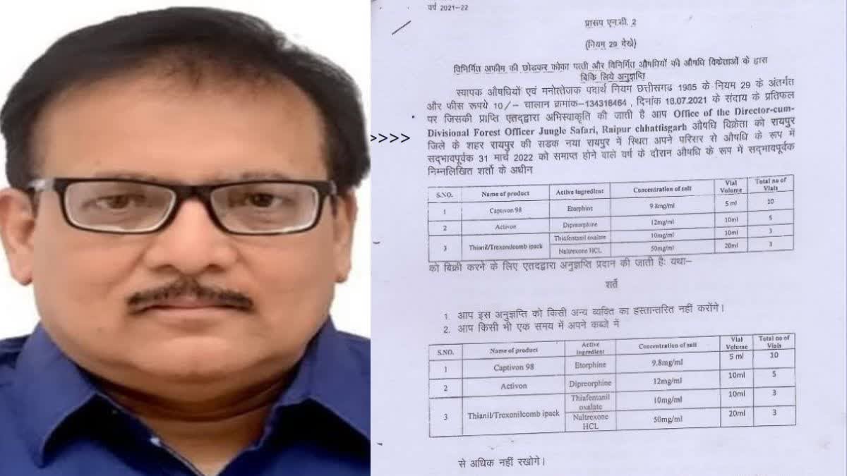 सिर्फ जंगल सफारी के लिए लाइसेंस और ले गए असम : जंगल सफारी के डायरेक्टर के नाम से सबसे पहली बार छत्तीसगढ़ आबकारी विभाग ने अगस्त 2021 में Ethorpin और अन्य ड्रग का सिर्फ जंगल सफारी के परिसर में उपयोग हेतु लाइसेंस जारी किया. अनिवार्य शर्त थी कि सिर्फ जंगल सफारी परिसर में उपयोग होगा अन्यत्र नहीं. दूसरी शर्त थी कि डायरेक्टर जंगल सफारी ड्रग अनुमोदित चिकित्सक से नुस्खा प्राप्त होने के बाद ही देंगे और प्रिस्क्रिप्शन रिकॉर्ड में रखंगे. शर्तों की पूरी जानकारी होने के बाद भी मार्च 2023 में वर्तमान प्रधान मुख्य वन संरक्षक ने असम से चार और वन भैंसा लाने के कमेटी गठन का आदेश जारी किया, जिसमें वन्यप्राणी चिकित्सकों का नाम लेकर आदेशित किया कि वन्यप्राणी चिकित्सक बेहोश करने की दवा अपने साथ ले कर जाएंगे.