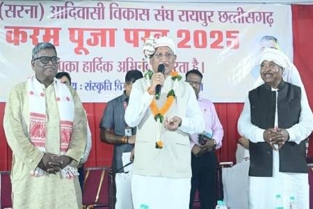 छत्तीसगढ़:– मुख्यमंत्री श्री विष्णु देव साय आज शाम राजधानी स्थित अखिल भारतीय वनवासी आश्रम परिसर में उरांव (सरना) आदिवासी विकास संघ रायपुर द्वारा आयोजित करम पूजा परब 2025 महोत्सव में शामिल हुए।
