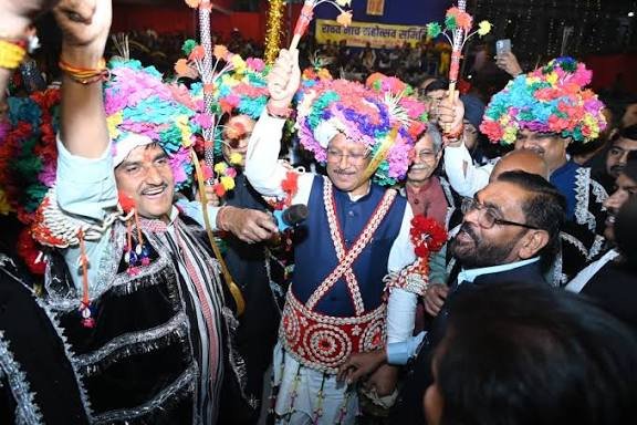 पारंपरिक वेशभूषा में नर्तक दलों के बीच पहुंचे मुख्यमंत्री