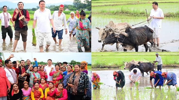 मुख्यमंत्री पुष्कर सिंह धामी ने एक्स पर एक पोस्ट शेयर करते हुए लिखा- खटीमा के नगरा तराई में अपने खेत में धान की रोपाई कर किसानों के परिश्रम, त्याग और समर्पण को अनुभव कर पुराने दिनों को याद किया। अन्नदाता न केवल हमारी अर्थव्यवस्था की रीढ़ हैं बल्कि संस्कृति और परंपरा के वाहक भी हैं।