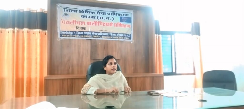 कुमारी डिंपल सचिव जिला विधिक सेवा प्राधिकरण कोरबा के नेतृत्व मार्गदर्शन में पैरालीगल वॉलिंटियर्स के लिए एकदिवसीय प्रशिक्षण का आयोजन किया गया जिसका उद्देश्य था “संवेगात्मक प्रतिशोध को रचनात्मक संवेदना में परिवर्तित कर समाज हित में कार्य कुशलता को निखारना”