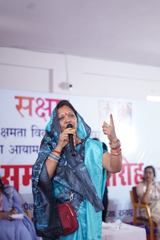 आदरणीय श्रीमती कौशल्या साय जी ने सक्षम द्वारा खड़े किए समाज में कार्यो की अत्यंत सराहना की व दिव्यांगों के प्रति समाज के अपने जिम्मेदारियों का स्मरण कराया | अपने उद्बोधन में उन्होंने महिला सशक्तिकरण को दिव्यांगों के सर्वांगीण विकास लिए आवश्यक बिंदु बताया |
