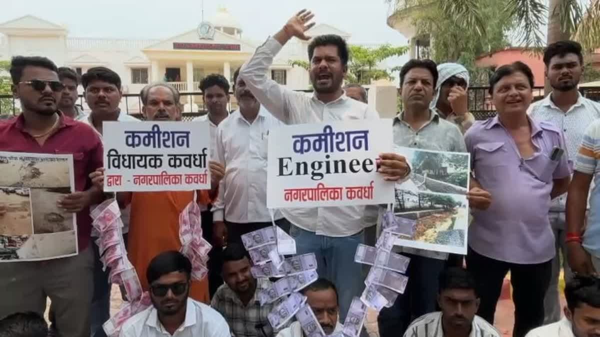 नोटों की माला प्रतिकात्मक रूप से देने आए हैं. बिना टेंडर निकाले सत्तर प्रतिशत से ज्यादा दाम हो जाता है. इसलिए कमीशन का पैसा भेंट स्वरूप देने आए हैं ताकि कुछ लाज शर्म लगे और नगर विकास के नाम पर जो गुणवत्ताविहीन काम और भ्रष्टाचार हो रहा है, वो बंद हो-आकाश केशरवानी, कांग्रेस नेता