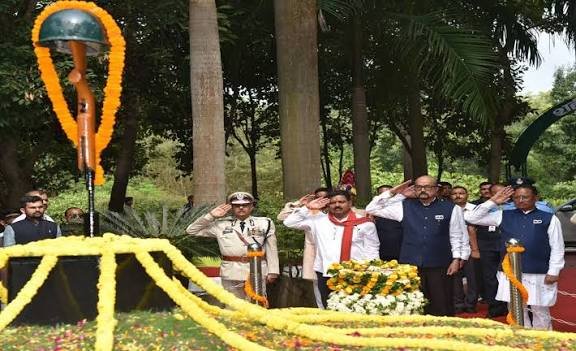 छत्तीसगढ़:– राज्यपाल श्री रमेन डेका और मुख्यमंत्री श्री विष्णु देव साय आज पुलिस स्मृति दिवस के अवसर पर राजधानी रायपुर स्थित शहीद वाटिका पहुंचे। उन्होंने अमर जवान स्तंभ पर पुष्पांजलि अर्पित कर शहीद वीर जवानों को नमन किया। उन्होंने शहीदों के सर्वोच्च बलिदान को स्मरण करते हुए उनके परिजनों के प्रति सम्मान और कृतज्ञता व्यक्त की।