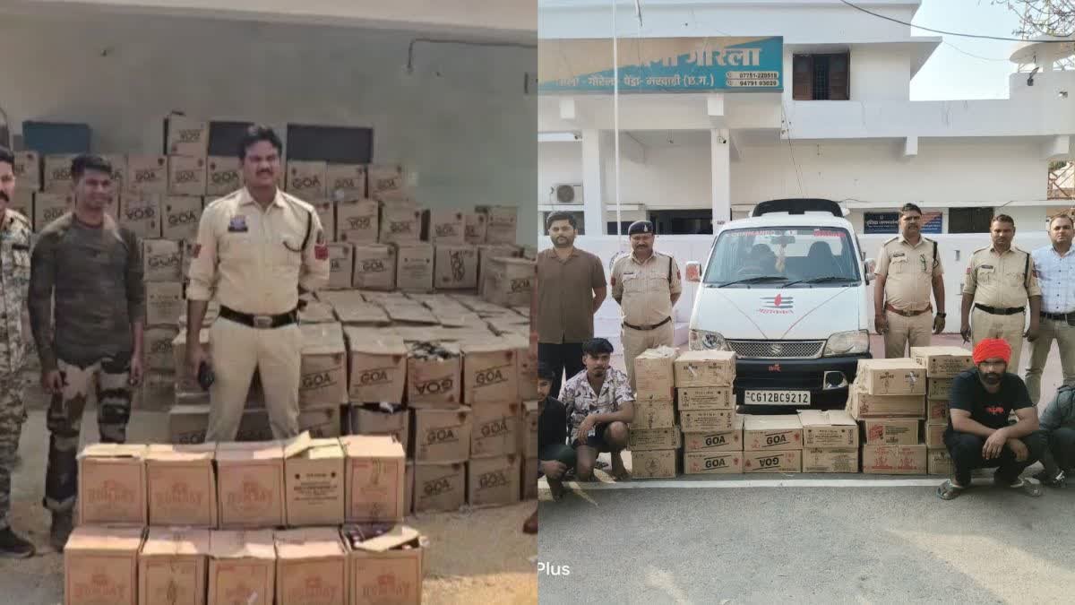 गौरला पेंड्रा मरवाही में अंतराज्यीय शराब तस्कर अरेस्ट : गौरेला पेंड्रा मरवाही में अवैध अंग्रेजी शराब खपाने की कोशिश की गई.जिसमें पुलिस को बड़ी सफलता हासिल हुई. 1 अप्रैल को एमपी में शराब का ठेका बदला जाता है.लिहाजा पुराना स्टॉक तस्कर छत्तीसगढ़ लाकर खपा देते हैं.ऐसे में पुलिस ने एमपी बार्डर वाले इलाकों में चौकसी बढ़ाई थी.जिसमें पुलिस ने 187 लीटर अवैध शराब जब्त की.कार्रवाई में पुलिस ने चार आरोपियों को गिरफ्तार किया है.इन आरोपियों में गौरेला में मिलेनियम ढाबा चलाने वाला संचालक भी गिरफ्तार हुआ है.