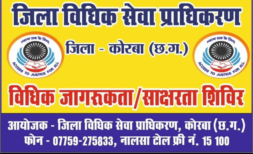 राष्ट्रीय लोक अदालत में फौजदारी बैंकों के रिकवरी से संबंधित परिवारवाद व सिविल आदि न्यायालय से संबंधित प्रकरणों का निराकरण किया जाएगा राष्ट्रीय विधिक सेवा प्राधिकरण तहत लोक अदालत का आयोजन होगा सत्येंद्र कुमार साहू मुख्य जिला एवं सत्र न्यायाधीश कोरबा के निर्देशन एवं कुमारी डिंपल सचिव जिला विधिक सेवा प्राधिकरण कोरबा के मार्गदर्शन में रमाकांत दुबे अधिकार मित्र (पीएलवी) द्वारा जागरूकता का आयोजन किया गया।