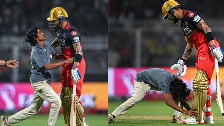 दरअसल, ये घटना तब कि है जब आरसीबी की पारी के 13वें ओवर की आखिरी गेंद पर विराट कोहली ने चौका लगाकर अपनी फिफ्टी पूरी की और मैदान में एक फैन घुस गया। सिक्योरिटी को चकमा देकर वह किंग कोहली से मिलने मैदान में पहुंचा और सीधे उनके पैरों में जाकर गिरा और उनका आशीर्वाद लिया। इस दौरान उन्होंने किंग को जोर से गले भी लगाया।