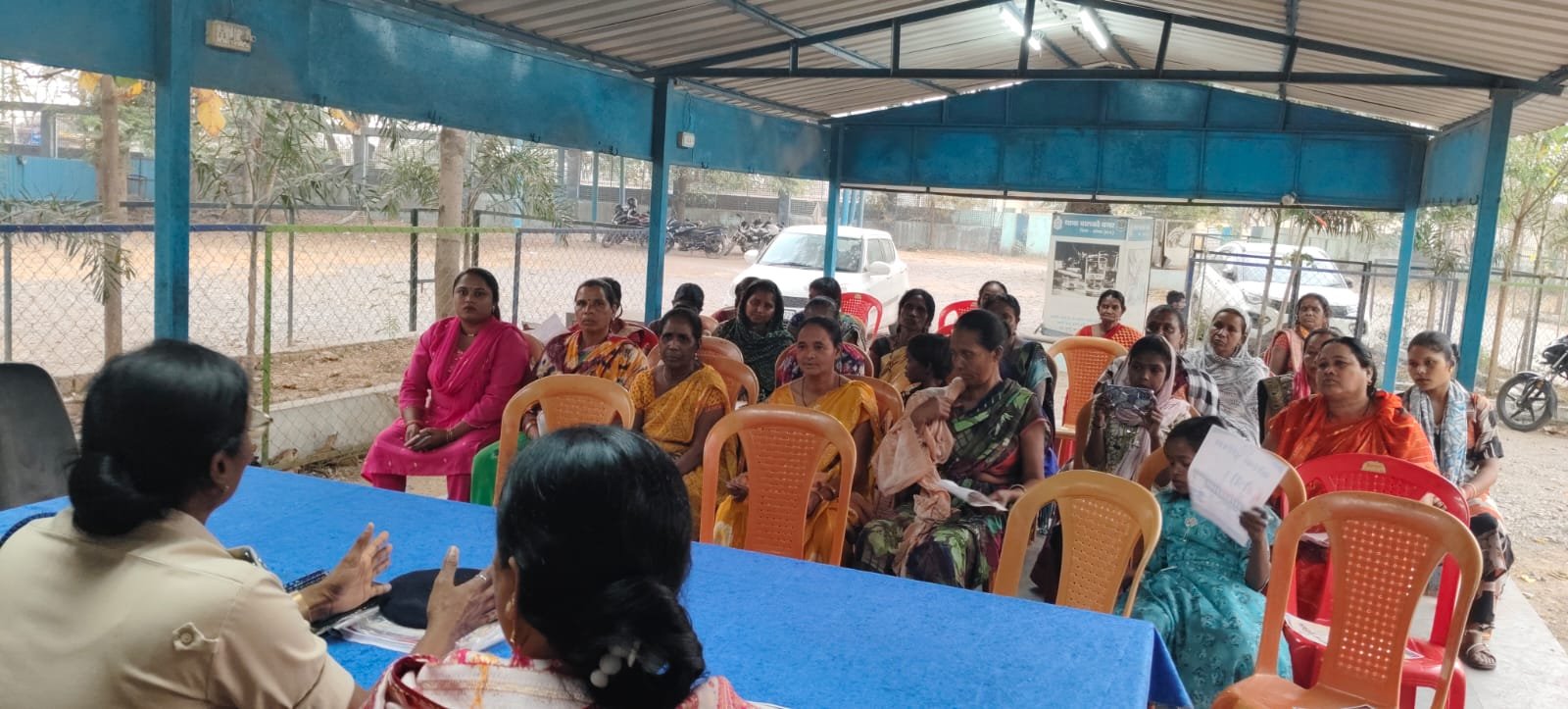 कार्यक्रम के दौरान श्रीमती प्रतिभा मरकाम द्वारा हेल्पलाइन की उपयोगिता, पुलिस सहायता प्राप्त करने की प्रक्रिया, तथा महिला सुरक्षा, साइबर अपराध एवं सामाजिक अपराधों से बचाव के संबंध में विस्तृत जानकारी दी गई।