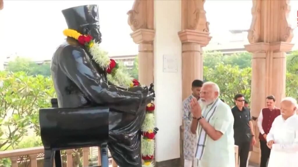 प्रधानमंत्री मोदी ने स्मृति मंदिर में आरएसएस के संस्थापको केशव बलिराम हेडगेवार और माधव सदाशिव गोलवलकर को पुष्पांजलि अर्पित की.