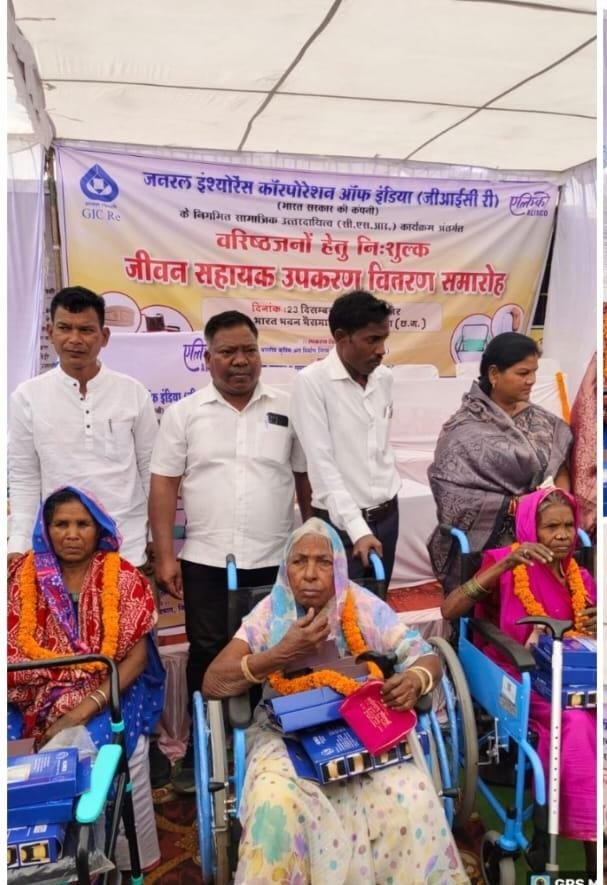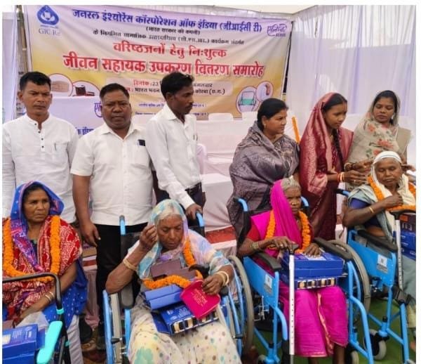 कोरबा :–रजत जयंती के अवसर पर वरिष्ठजनों के सम्मान एवं सहयोग के उद्देश्य से जिला प्रशासन, समाज कल्याण विभाग तथा जनपद पंचायत कोरबा के संयुक्त तत्वावधान में भारत सरकार की कम्पनी जनरल इंश्योरेंस कॉरपोरेशन ऑफ इंडिया के सीएसआर कार्यक्रम अंतर्गत निःशुल्क जीवन सहायक उपकरण वितरण समारोह का आयोजन भारत भवन, भैसमा में किया गया। कार्यक्रम में कुल 121 वरिष्ठजनों को 729 सहायक उपकरण निःशुल्क वितरित किए गए।