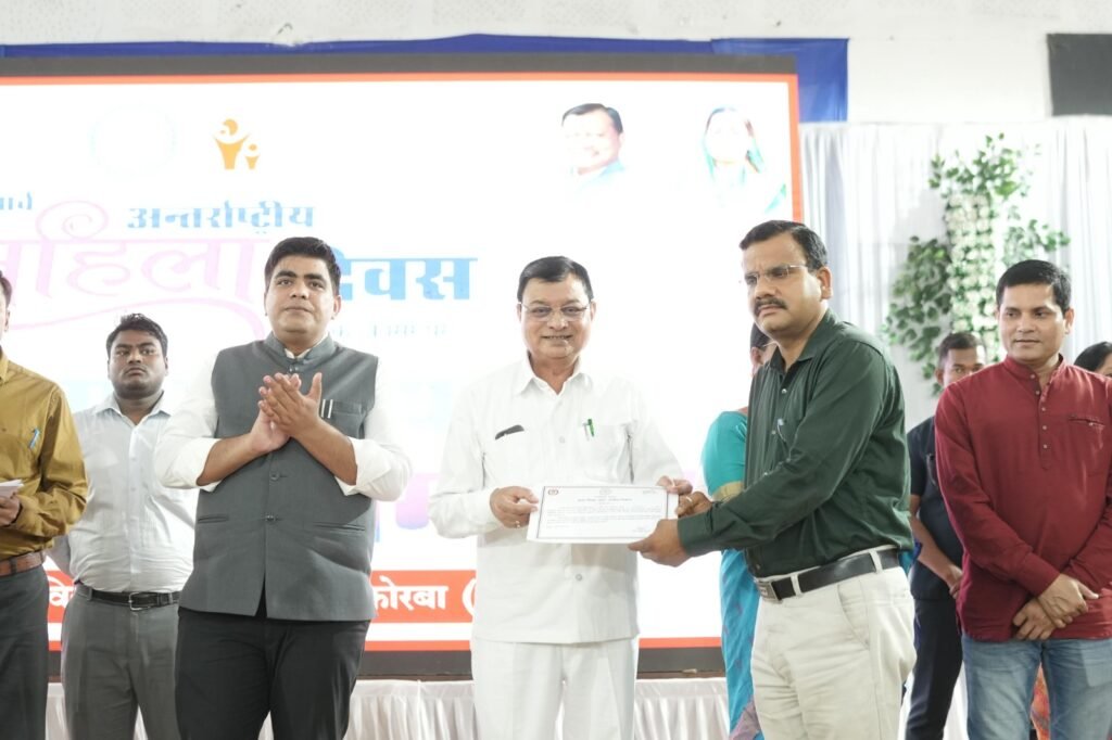 कोरबा :· अंतर्राष्ट्रीय महिला दिवस के अवसर पर छत्तीसगढ़ शासन के वाणिज्य, उद्योग, श्रम, आबकारी व सार्वजनिक उपक्रम मंत्री लखन लाल देवांगन के आतिथ्य में नगर के राजीव गांधी ऑडिटोरियम में जिला स्तरीय महतारी वंदन सम्मेलन का आयोजन किया गया। कार्यक्रम में जिले की विभिन्न क्षेत्रो में उत्कृष्ट कार्य करने वालो महिलाओं को सम्मानित एवं बाल विवाह मुक्त पंचायतो को प्रमाण पत्र प्रदान किया गया। इस अवसर पर महापौर संजू देवी राजपूत,सभापती नूतन सिंह ठाकुर, कलेक्टर कुणाल दुदावत, विशेष कर्तव्यस्थ अधिकारी तरुण कुमार किरण, सीईओ जिला पंचायत दिनेश नाग, जिला कार्यक्रम अधिकारी बसंत मिंज सहित अन्य जनप्रतिनिधि, विभागीय अधिकारी कर्मचारी एवं बड़ी संख्या में महिलाएं उपस्थित थी।