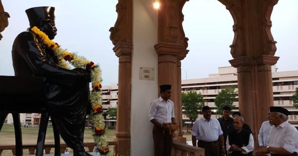 आरएसएस प्रमुख मोहन भागवत ने नागपुर में आरएसएस विजयादशमी उत्सव कार्यक्रम में संगठन के संस्थापक के. बी. हेडगेवार को श्रद्धांजलि अर्पित की। इस समारोह के मुख्य अतिथि पूर्व राष्ट्रपति राम नाथ कोविंद भी उपस्थित रहे।