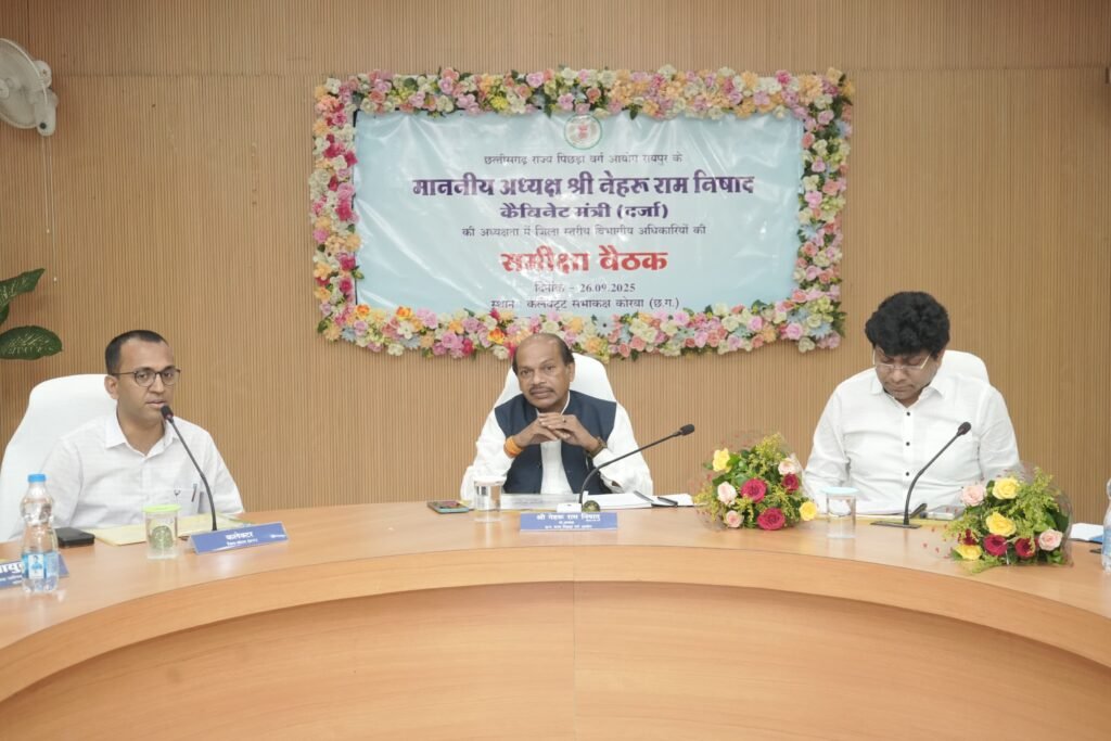 कोरबा / छत्तीसगढ़ राज्य पिछड़ा वर्ग आयोग अध्यक्ष नेहरू राम निषाद की अध्यक्षता में कलेक्टोरेट सभाकक्ष में जिला स्तरीय अधिकारियों की समीक्षा बैठक आयोजित हुई। श्री निषाद ने अधिकारियों से जिले में अन्य पिछड़ा वर्ग के कल्याण हेतु संचालित केंद्र एवं राज्य सरकार की विभिन्न योजनाओं की प्रगति की जानकारी ली और योजनाओं का धरातल पर बेहतर क्रियान्वयन कर समाज के अंतिम पायदान में खड़े व्यक्ति तक लाभ पहुचाने के निर्देश दिए। इस दौरान कलेक्टर अजीत वसंत, निगम आयुक्त आशुतोष पाण्डेय, मुख्य कार्यपालन अधिकारी जिला पंचायत दिनेश नाग, सहायक कलेक्टर क्षितिज गुरभेले, अपर कलेक्टर देवेंद्र पटेल, सचिव राज्य पिछड़ा वर्ग आयोग संकल्प साहू, सहायक अनुसंधान अधिकारी अनिता डेकाटे, सहायक आयुक्त आदिवासी विभाग श्रीकांत कसेर सहित विभागीय अधिकारी उपस्थित थे।