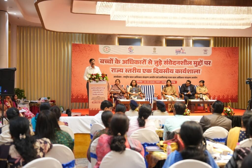 रायपुर:- राज्य बाल अधिकार संरक्षण आयोग द्वारा बच्चों के अधिकारों से जुड़े संवेदनशील मुद्दों पर राज्यस्तरीय एक दिवसीय कार्यशाला का आयोजन किया गया। महिला एवं बाल विकास मंत्री लक्ष्मी रजवाड़े ने कार्यशाला का उद्घाटन किया। इस एक दिवसीय कार्यशाला को दो सत्रों में आयोजित किया गया, जिसमें प्रथम सत्र राष्ट्रीय बाल अधिकार संरक्षण आयोग से आईं शाइस्ता शाह ने लिया व द्वितीय सत्र कमिश्नरेट रायपुर के संजीव शुक्ला ने लिया, जिसमें सभी जिलों से जिला शिक्षा अधिकारी, जिला बाल कल्याण अधिकारी, बाल गृह अधीक्षक, SJPU (Special Juvenile Police Unit) शामिल हुए।