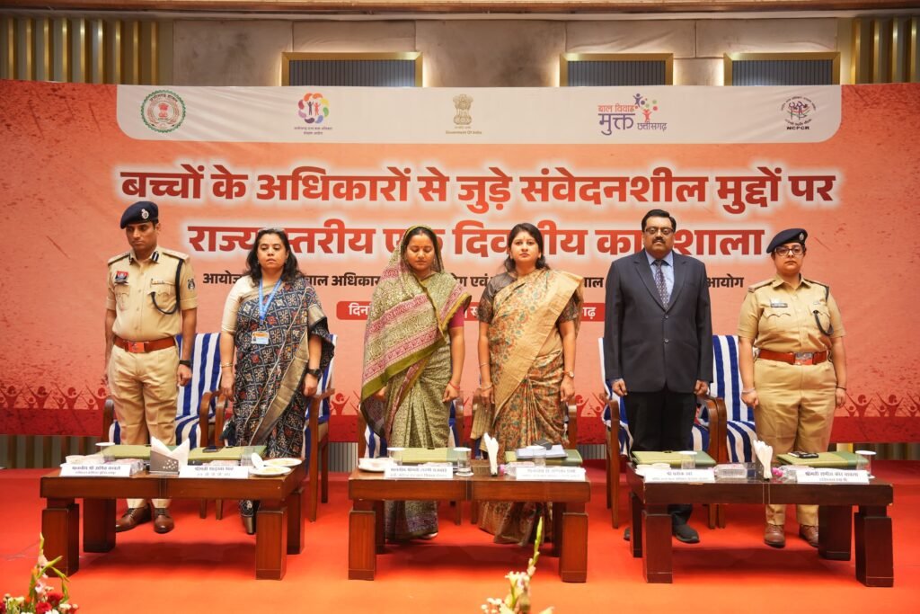 इस अवसर प महिला एवं बाल विकास मंत्री लक्ष्मी रजवाड़े, बाल अधिकार संरक्षण आयोग अध्यक्षा डॉ. वर्णिका शर्मा, राष्ट्रीय बाल अधिकार संरक्षण आयोग से शाइस्ता शाह, रायपुर कमिश्नर संजीव शुक्ला, SJPU हेड रश्मीत कौर, एडिशनल कमिश्नर ये पुलिस रायपुर कांबले, आयोग सचिव प्रतीक खरे सहित सभी जिलों के SJPU, DEO, DCPO एवं संबंधित अधिकारी उपस्थित रहे कार्यशाला का उद्देश्य विभिन्न विभागों के समन्वय से बच्चों के अधिकारों की प्रभावी सुरक्षा सुनिश्चित करना एवं उनके उज्ज्वल भविष्य के लिए ठोस कार्ययोजना तैयार करना रहा।
