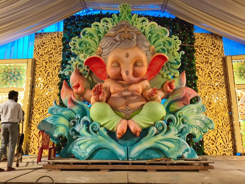 जांजगीर चांपा :- जांजगीर चांपा जिला मुख्यालय में गणेशोत्सव की तैयारी पूरी हो चुकी है. पंडालों को आकर्षक रुप में सजाया गया है. जांजगीर कचहरी चौक के राजा के नाम से प्रसिद्ध समिति पिछले 17 साल से गणेशोत्सव मना रही है. इसी कड़ी में इस बार 22 फीट ऊंची प्रतिमा की स्थापना हुई है. जिसे भटगांव के मूर्तिकारों ने मिट्टी और नेचुरल कलर का इस्तेमाल करके एक महीने में बनाया है.