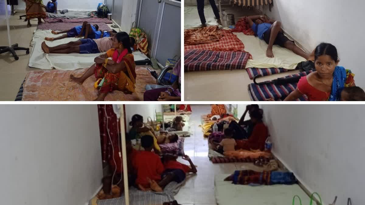 भैरमगढ़ कम्युनिटी हेल्थ सेंटर: ब्लॉक मेडिकल ( BMO) डॉ. रमेश तिग्गा ने बताया कि भैरमगढ़ का हेल्थ सेंटर 30 बिस्तरों का है लेकिन फ़िलहाल 100 से ज़्यादा मरीज़ एडमिट हैं. बेड कम हैं जिसके चलते आंगन में बिस्तर लगाकर वैकल्पिक व्यवस्था की गई है.