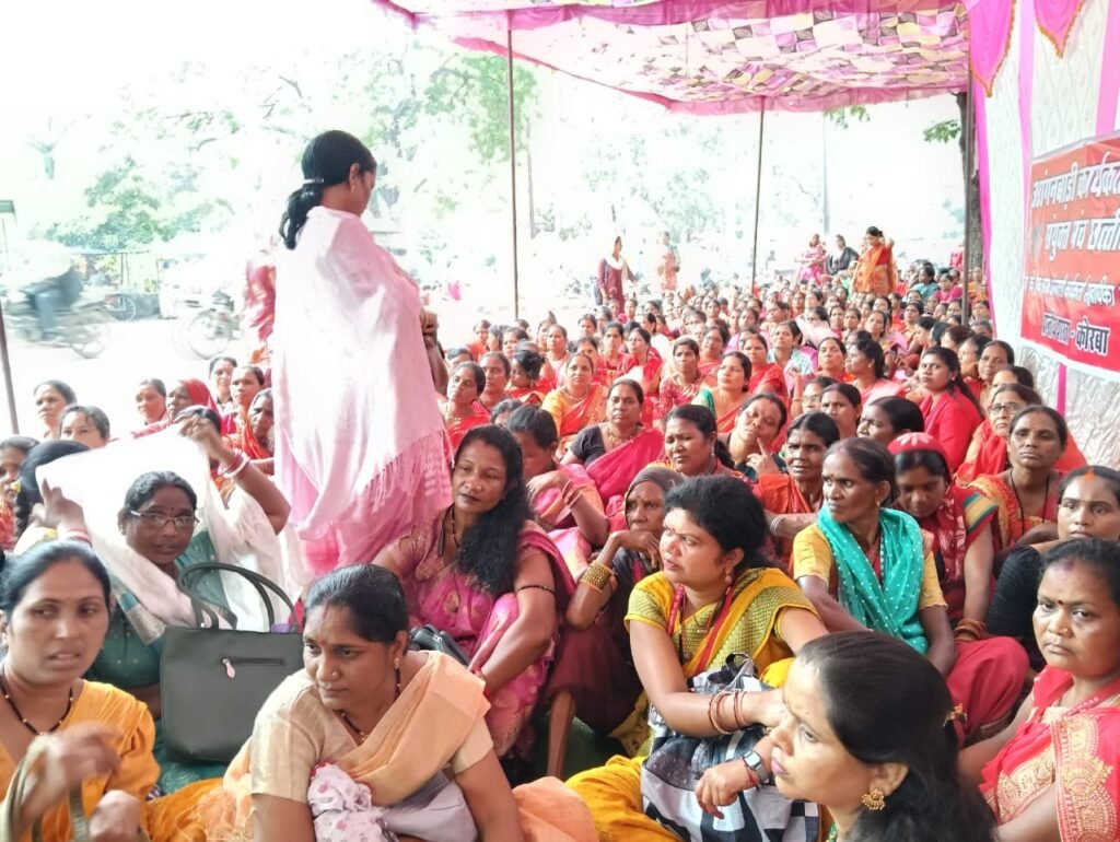 आंगनबाड़ी कार्यकर्ता सहायिकाओं की हुंकार: सेवा का सम्मान दो, स्थायीकरण का अधिकार दो”-कोरबा मे महिला सक्ति का आंदोलन”