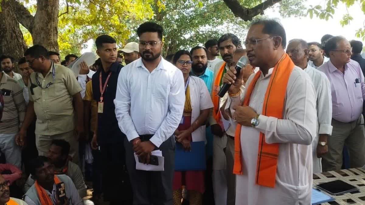 सुशासन तिहार में सीएम साय: प्रदेश के मुखिया ने गांव के बीच स्थित महुआ के पेड़ के नीचे चौपाल लगाई. सीएम ने चौपाल की शुरुआत भारत माता और छत्तीसगढ़ महतारी के जयकारों के साथ की. गांव के सरपंच को अपने पास बिठाया और पंचायत में विकास कार्यों एवं जनहित की योजनाओं के क्रियान्वयन और समस्याओं की जानकारी ली. मुख्यमंत्री के आगमन की खबर पाकर आसपास के कोलियारी और कुवांरपुर पंचायत के साथ ही कई गांवों से भी बड़ी संख्या में ग्रामीण माथमौर पहुंचे थे. जिन्होंने अपनी समस्याएं और मांग मुख्यमंत्री विष्णुदेव साय के सामने रखी.