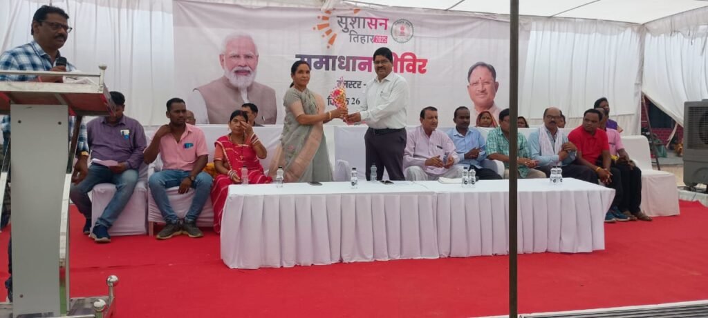 कोरबा :– सुशासन तिहार 2025 के अंतर्गत जनपद पंचायत पोड़ी उपरोड़ा में सिंघिया क्लस्टर में समाधान शिविर का आयोजन किया गया। यह शिविर ग्रामीणों की समस्याओं के त्वरित समाधान और शासन की योजनाओं के लाभ को सीधे जनता तक पहुंचाने का माध्यम बना।