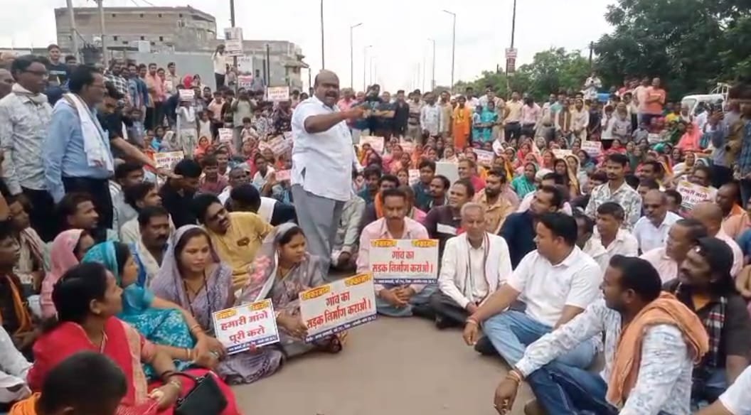 सड़क के लिए चक्काजाम : आपको बता दें कि जिला मुख्यालय से महज 3 किलोमीटर की दूरी पर स्थित जर्वे के ग्रामीणों ने शासन प्रशासन के खिलाफ नारेबाजी करते हुई नेशनल हाइवे 49 पर चक्का जाम किया. साल भर पहले भी ग्रामीणों ने जर्वे-पीथमपुर मार्ग की बदहाली को लेकर प्रदर्शन किया था. लेकिन आश्वासन के साल भर बाद भी कोई पहल नहीं होने पर एनएच 49 पर चक्का जाम कर दिया. इस चक्काजाम को जांजगीर चांपा विधानसभा क्षेत्र के कांग्रेस विधायक ब्यास कश्यप ने भी समर्थन दिया और सड़क पर बैठकर प्रदर्शन किया.