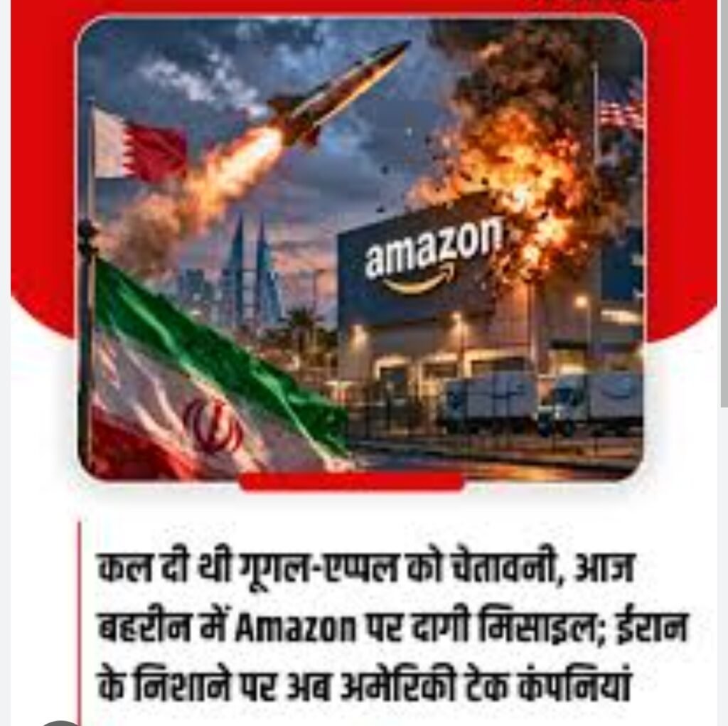 नई दिल्ली:– फारस की खाड़ी में जारी सैन्य तनाव अब एक ऐसे खतरनाक मोड़ पर पहुंच गया है, जिसने वैश्विक अर्थव्यवस्था और तकनीकी जगत की नींद उड़ा दी है। ईरान ने अपने पड़ोसी देश बहरीन में स्थित अमेरिकी दिग्गज कंपनी Amazon के हेडक्वार्टर को निशाना बनाकर भीषण मिसाइल हमला किया है।